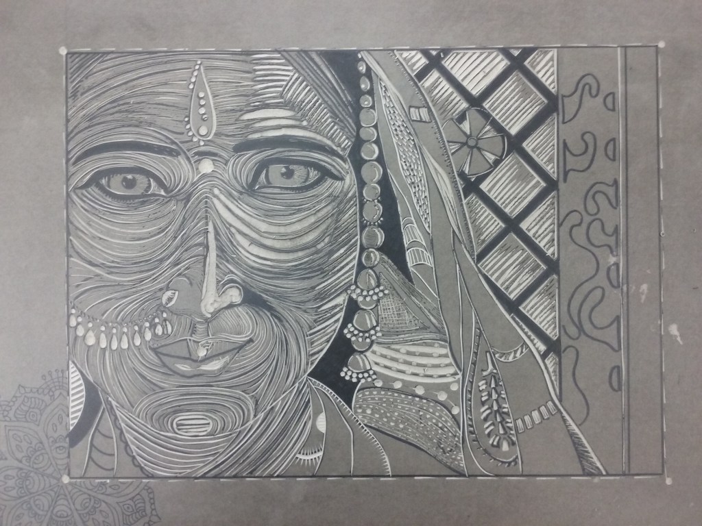 Back in 2017 when I was a senior in college I took a course on Printmaking with a very excellent Professor named Kate Borcherding. I created this linocut in her class which was inspired by a photograph. A linocut is when you carve out a piece of linoleum (like the flooring) and print with the negative space left behind by the carving. Below are a series of images taken at different stages of the project.